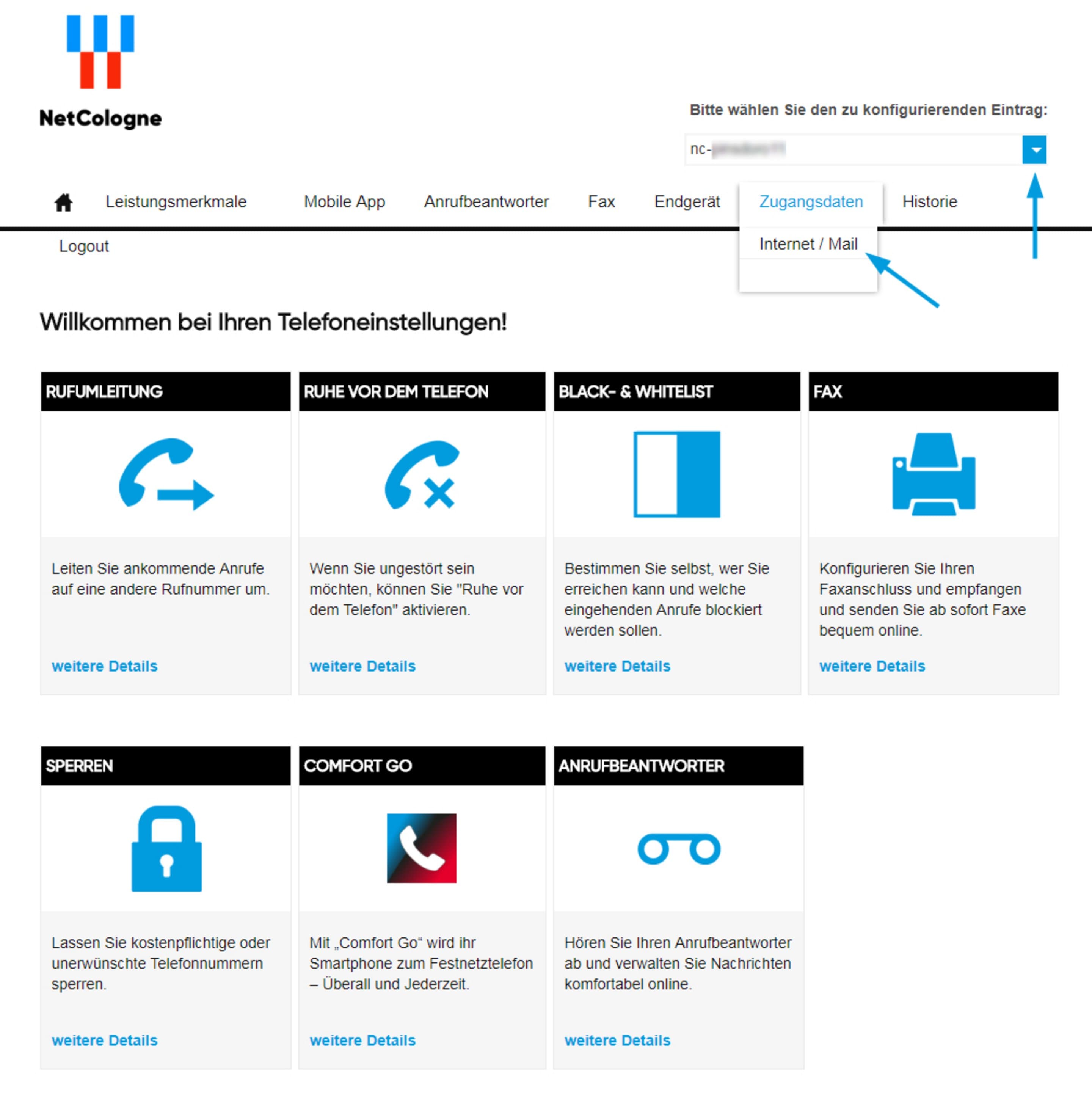 Die Zugangsdaten für Ihre NetMail können Sie über die Website unseres Mutterunternehmens NetCologne jederzeit auf der Einstellungsseite für Zugangsdaten Ihres Anschlusses ändern: