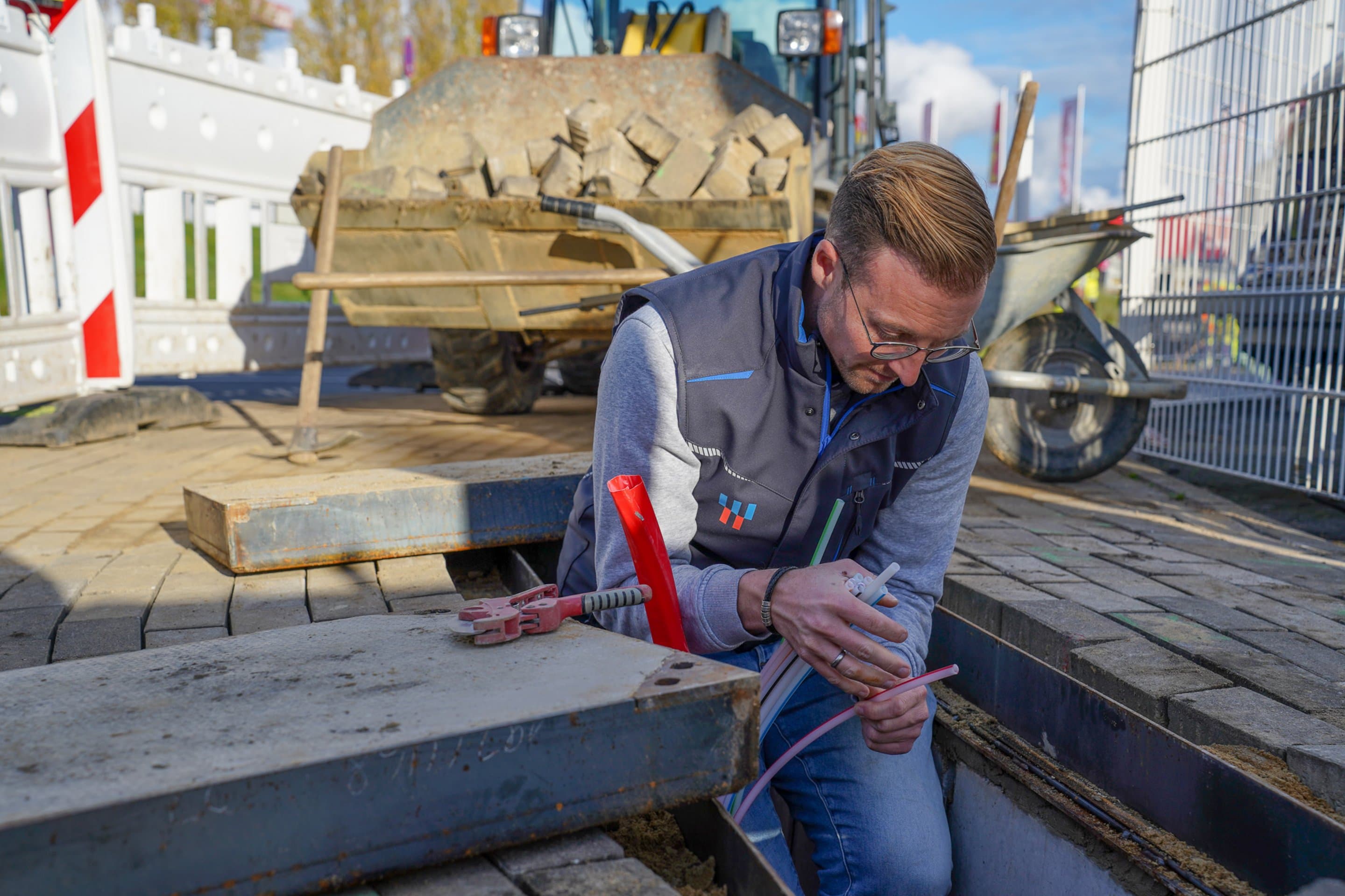 - Professionelles Verlegeverfahren in geschlossener Bauweise (Tiefbau) mit Glasfaser